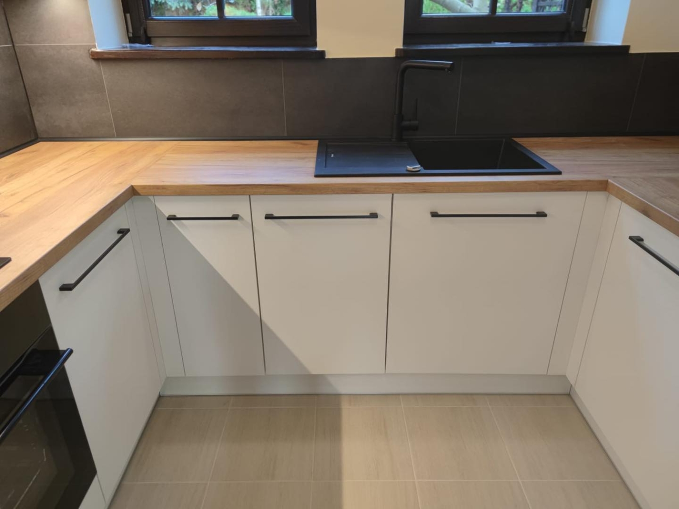 Dziś prezentujemy Wam nowoczesną kuchnię w lubianej przez naszych klientów łamanej bieli firmy Egger W1000.