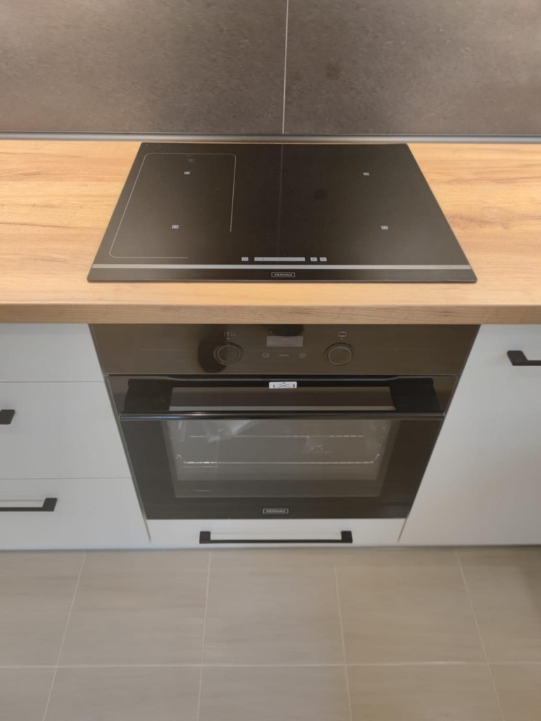 | Okucia | Zawiasy, systemy szufladowe i systemy podnośników: BLUM System koszy i systemy narożne: PEKA |
