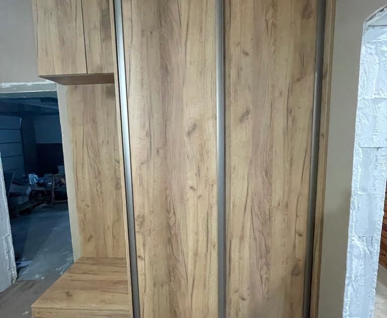 Zabudowa przedpokoju wykonana w ciepłym odcieniu koloru K003 Dąb Craft złoty.